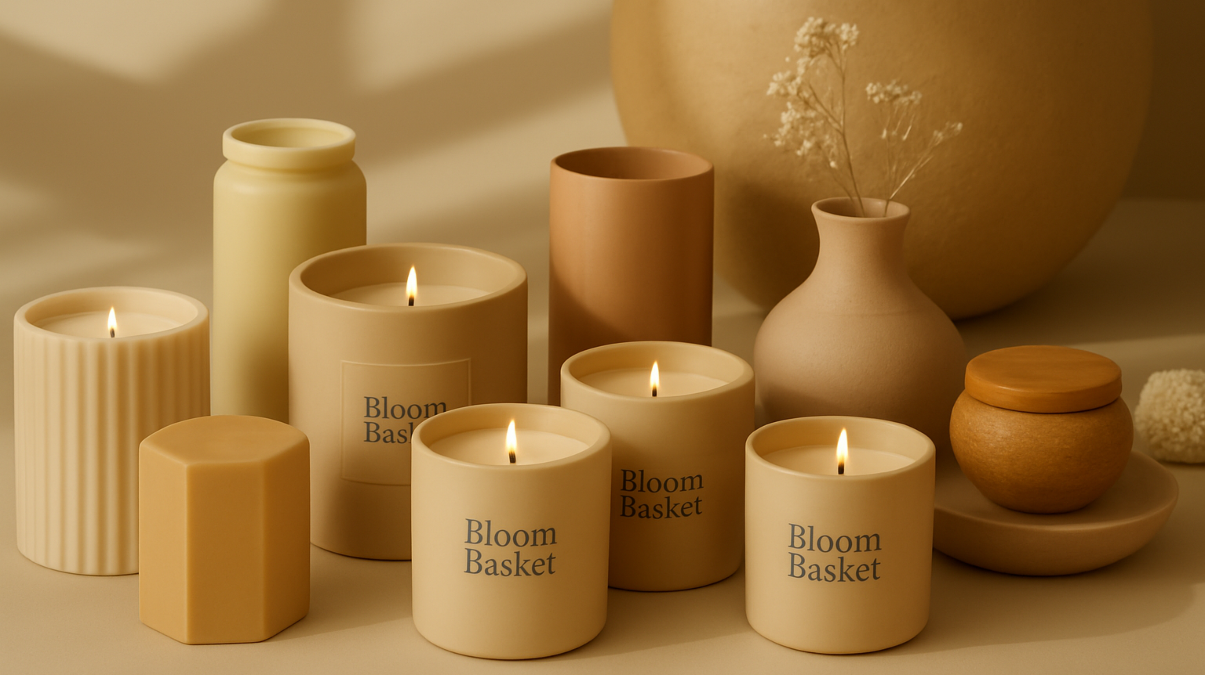 Luxury Black & White Ribbed Decor Set with Gold Accent – Vase, Pot, Tray & Peony
